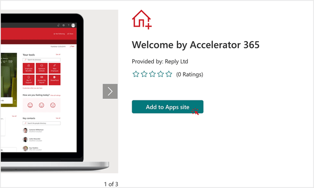 - The SharePoint Store provides access to all available Accelerator 365 apps.